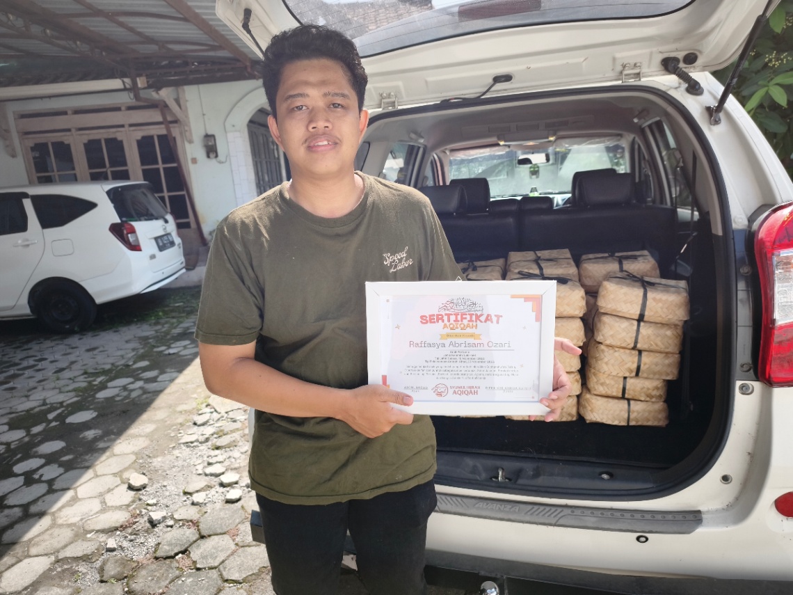 Pada tanggal yang disepakati, hewan disembelih dengan doa aqiqah. Foto/video proses dikirim ke WhatsApp Anda secara real-time.